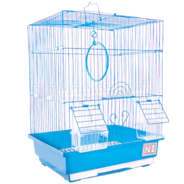 Полностью укомплектована необходимыми аксессуарами - кормушки, жердочки и качелька.